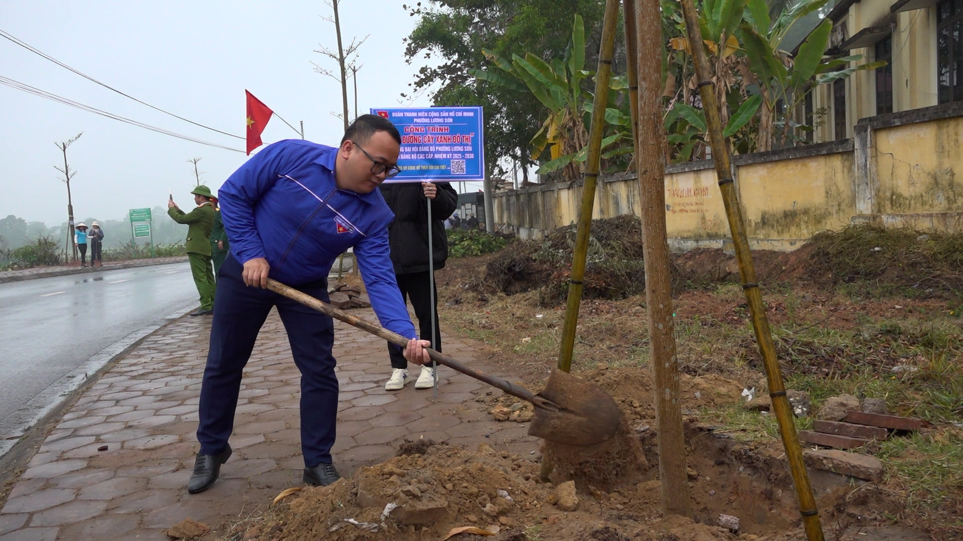 Ngay sau Lễ phát động, các đại biểu đã tham gia trồng 289 cây bàng đài loan dọc tuyến đường Lương Sơn qua trụ sở UBND phường. Mỗi cây trồng được gắn một mã QR, giúp người dân có thể dễ dàng quét và truy cập thông tin về loại cây, nguồn gốc, cũng như hướng dẫn chăm sóc và bảo vệ cây.